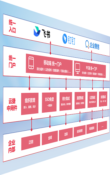 对协作平台提供支持服务,,,支持企业应用与协作平台对接,,,,包含组织同步、、、、消息集成、、、、待办集成等。。。。支持目前主流的协作平台:钉钉、、、企微和飞书。。